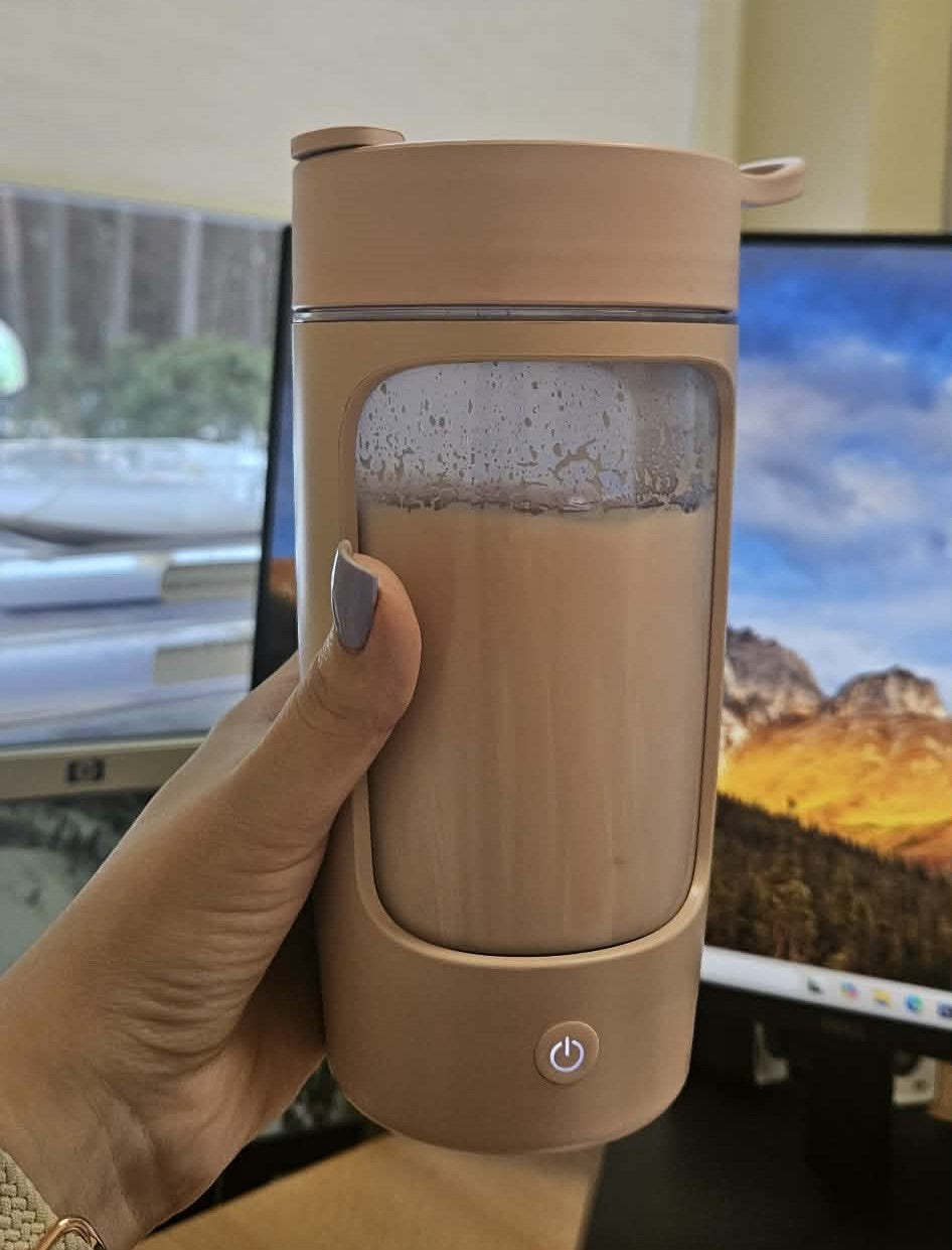 Su sandariu dangteliu ir ergonomišku dizainu, galingu elektriniu varikliu ir patogiu valdymu, Išmani elektrinė gertuvė–plaktuvas užtikrina sklandų, greitą ir efektyvų maišymą bet kur ir bet kada – sporto salėje, darbe ar kelionėje.