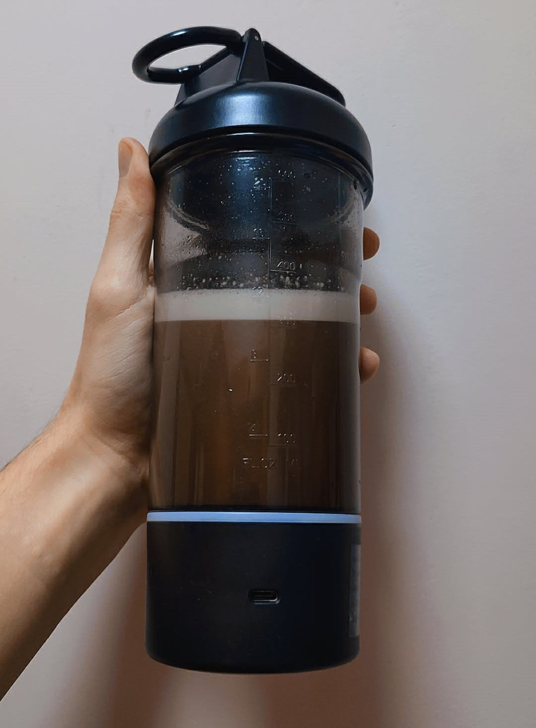 Labai patogu – įmeti proteiną, paspaudi mygtuką ir viskas tobulai išmaišyta. Nebelieka gumuliukų, kaip su paprasta plaktuve.